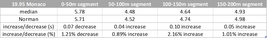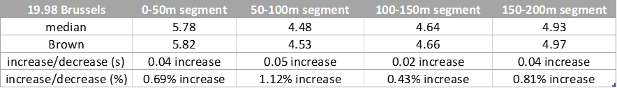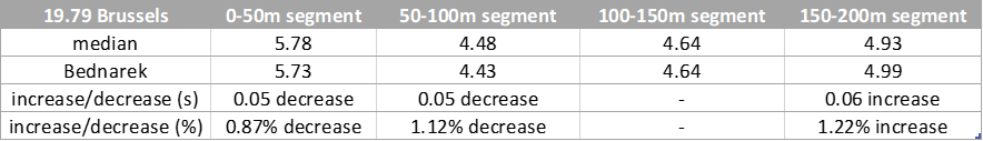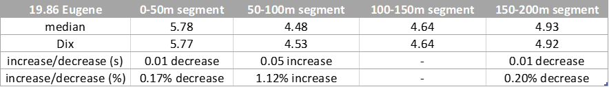 of that segment in 0.08644, 0.088 and 0.08955 seconds. Over 50 metres those